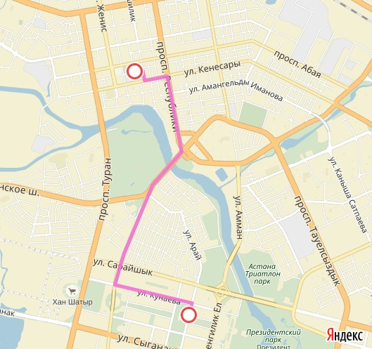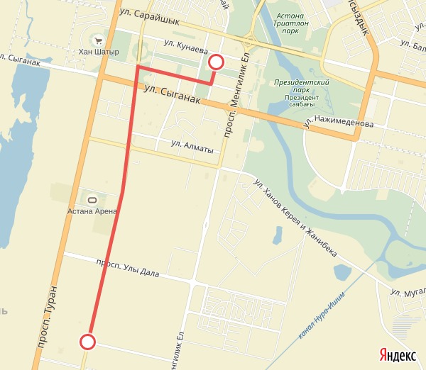 - по улице Д. Кунаева от улицы Туркестан до проспекта Кабанбай батыра;