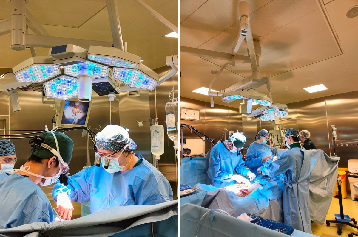 Во время операции в операционной находится бригада: три хирурга, один оперирующий и два ассистента, перфузиолог, перфузист, анестезиолог, анастезист, операционная сестра, младший медицинский специалист и, возможно, еще помощник сестры, а также кардиолог, если его присутствие требуется. То есть бригада большая и очень важна командная работа, так как не все поставлено на одном хирурге. Каждый должен знать свое дело и выполнять его вовремя и как надо.
