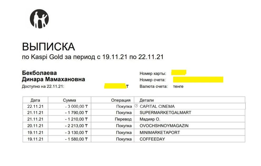 Выписка с карты Динары.Напомним, ранее министр энергетики Магзум Мирзагалиев сообщил СМИ, что его многодетная семья из семи человек питается в месяц на 200 тысяч тенге. А министр национальной экономики Асет Иргалиев заявил, что он вместе с супругой и двумя детьми живет всего лишь на 60 тысяч тенге в месяц.