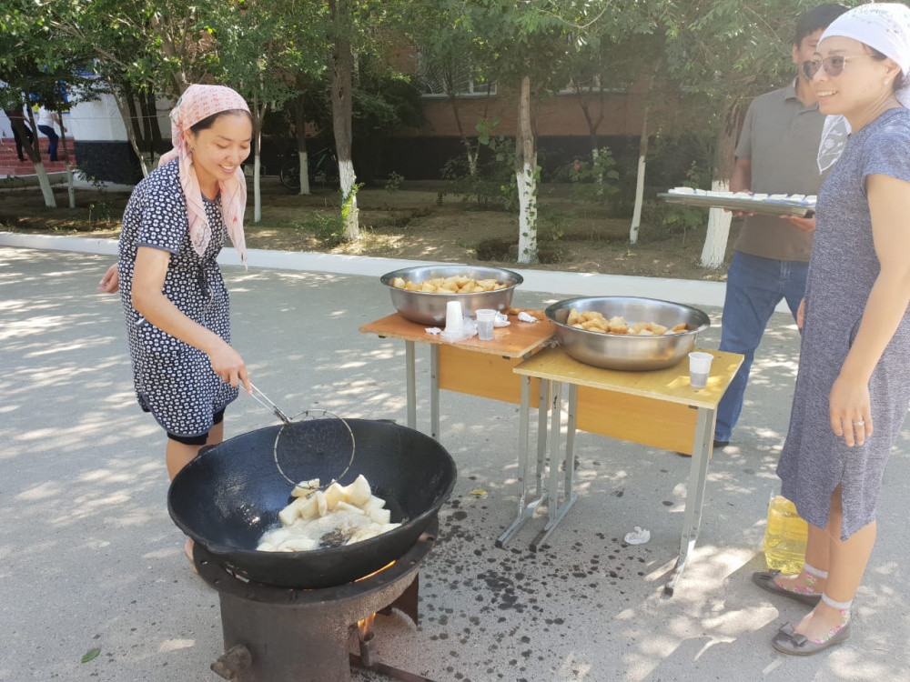 «В день выборов мы приготовили национальные блюда. Это бауырсаки, жент, курт и другие сладости. С раннего утра мы уже начали жарить бауырсаки. Угощения хватит на всех. Двери юрты открыты и каждый житель может отведать вкус любимого блюда. Сегодня мы выбираем не только будущего президента, но и будущее своей страны», — отметила учительница №101 школы Камшат Бабасова.
