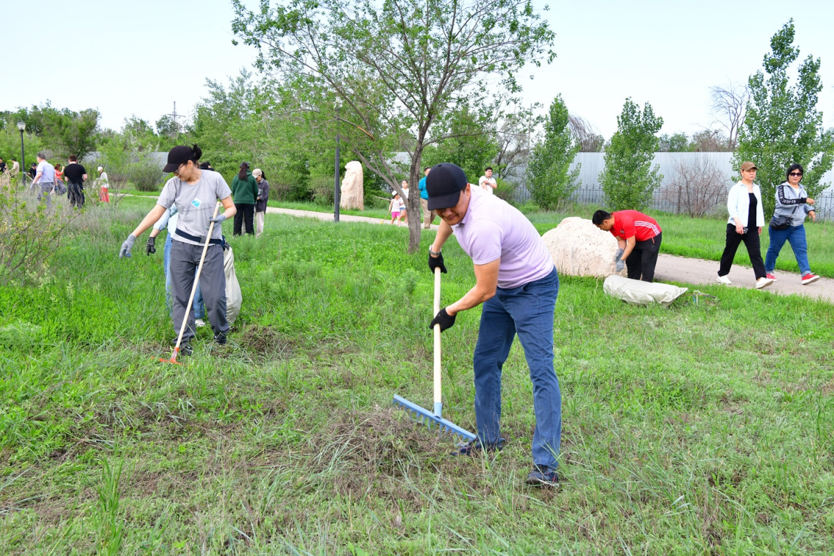 Вместе с главой региона Асхатом Шахаровым в субботнике приняли участие депутаты областного и городского маслихатов, сотрудники государственных учреждений, работники предприятий и организаций, трудовые отряды "Жасыл ел".