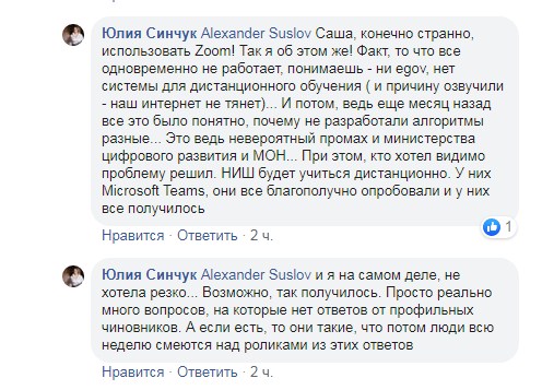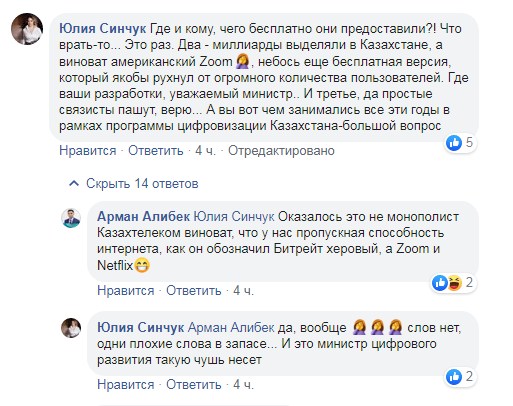 "Качество таких всемирно известных систем как Netflix оставляют желать лучшего (…) Также мы видим, что такие компании, как ZOOM, и которые сегодня используются для больших конференц-связей, испытывают максимально большое количество проблем. Например, в США был проведен соответствующий тест по использованию данной системы под обучение. Этот тест был неудачен. Более того, я хотел бы сказать, что этот тест проводился и в Казахстане 1 апреля. И эта система не смогла нормально функционировать, когда большое количество запросов было и от учеников, от учителей. Система упала", – рассказал Жумагалиев.