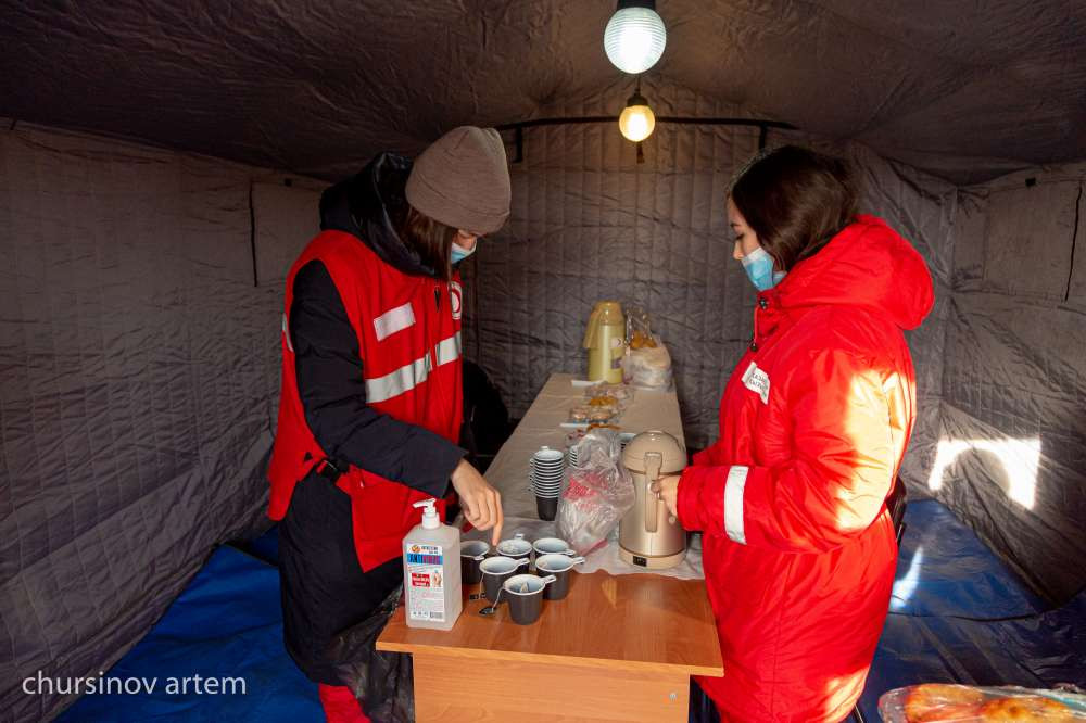 В пункте обогрева созданы участки для оказания медицинской и психологической помощи.