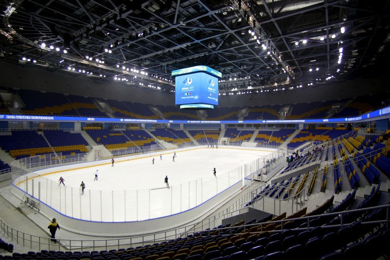 Самый большой Ледовый дворец страны «Алматы арена» начал свою работу совсем недавно. Ледовый дворец состоит из арены для фигурного катания на 12000 мест и арены для керлинга на 475 мест.