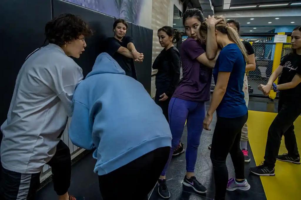 На фото ниже запечатлены алматинки во время тренировок по самообороне. Метафорично эта работа навевает мысль о самозащите от демографической ямы и рассказывает уже о положительной демографической динамике после программы репатриации в течение 25 лет (с 1991 по 2015 годы), которая привела к возвращению более одного миллиона кандасов — около пяти процентов населения.