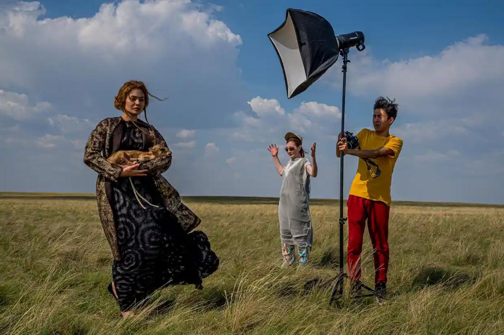 Заканчивается репортаж символичной фотографией: посреди просторной степи актриса держит маленького сайгака в руках — эндемика казахской степи.