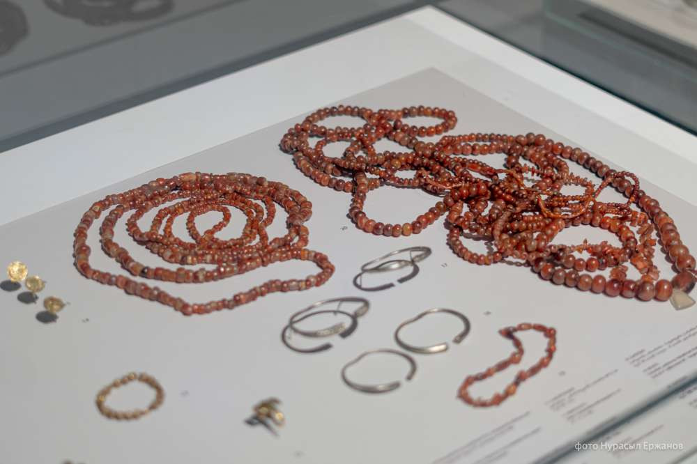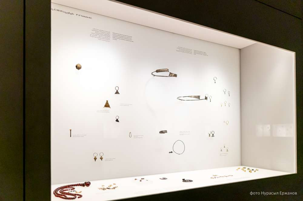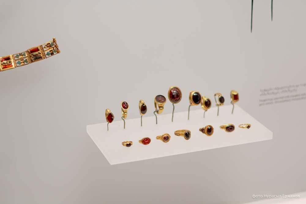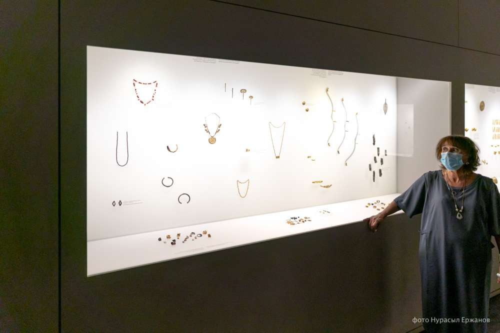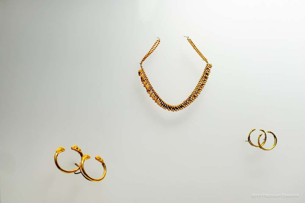 "Во всех этих витринах представлены вещи богатых людей. Особенна интересна здесь техника обработки золота. К примеру, маленькие зерна припаивались к цельному листу, это называется техника грануляции. Также в то время использовались техники инкрустации и филиграна. Все эти три вида техники уже в III тысячелетии наши предки знали и изготавливали такие красивые ожерелья", — объясняет сотрудница музея.