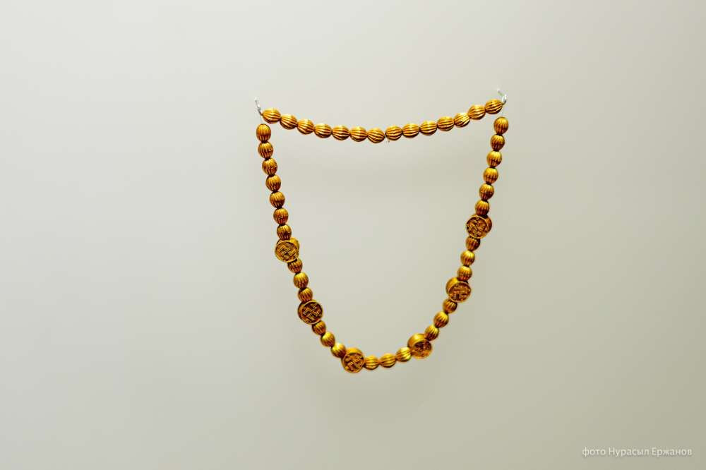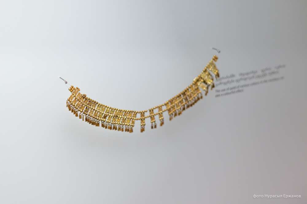 Следующее ожерелье носили члены царской семьи. Оно сплетено из золотых нитей. Кажется, что оно тяжелое, но на самом деле, оно легкое и мало весит.