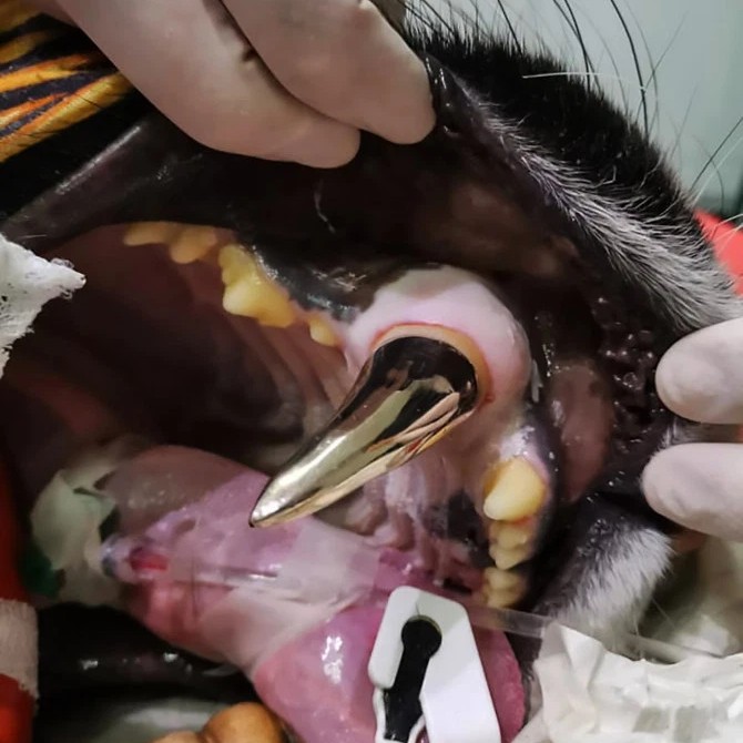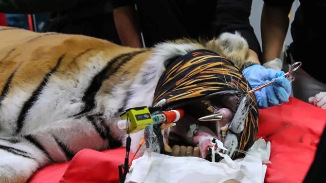Поэтому тигрица перенесла две сложные операции, чтобы сохранить возможность питаться и предотвратить дальнейшие страдания при попытке поесть.